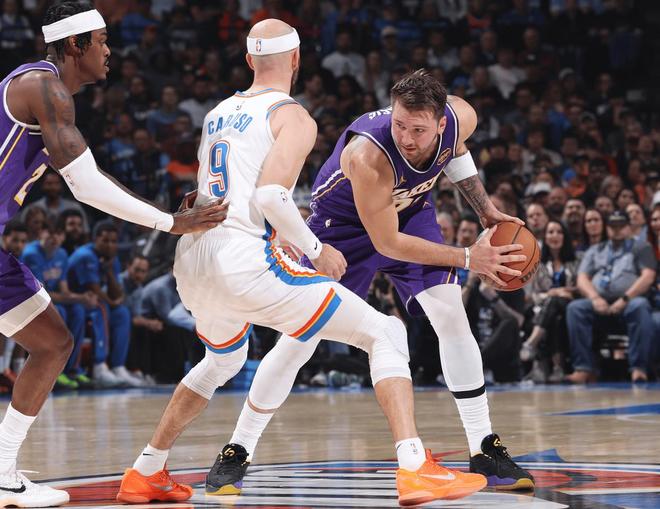 北京时间11月13日,NBA常规赛,雷霆坐镇主场迎战湖人。本场比赛之前,湖人8胜3负排名西部第3;虽然说湖人开局战绩很好,但总感觉他们在场上的统治力没有那么强,赢球基本靠东契奇和里夫斯爆种;这俩人一状态不好,球队就会快速崩盘。此外,湖人的投篮命中率联盟第一,但防守效率却在联盟倒数,防守还是有问题。